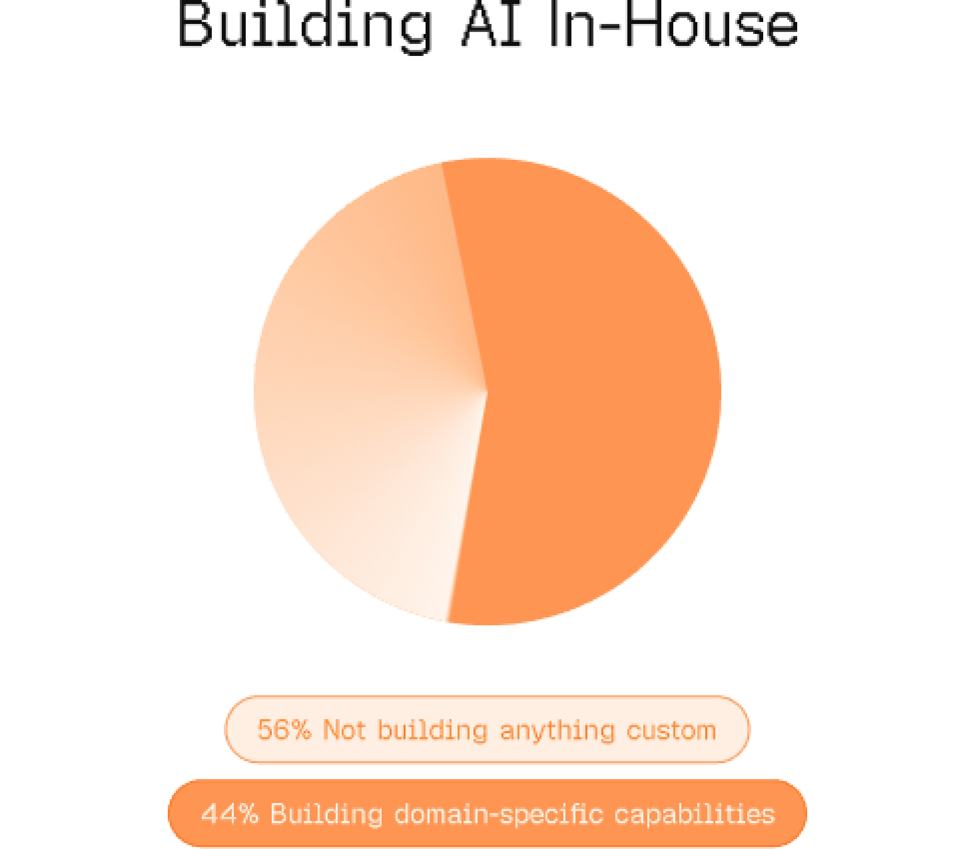 Among the 44% who are, the projects are domain-specific, like AI-assisted legal tools, healthcare models, code inspection and security, text/image-to-video, and manufacturing automation. These are narrow, proprietary capabilities that off-the-shelf models can’t reach.