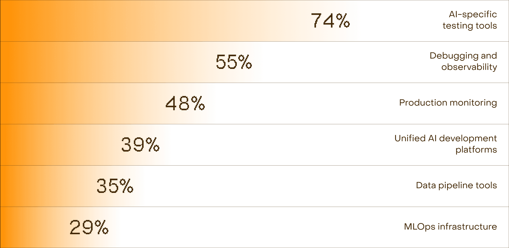 The top three gaps (testing, debugging, and observability) are all governance-adjacent. CTOs know they’re flying without instruments. But they haven’t found instruments they trust.